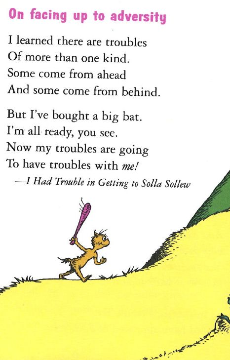 Yet, Dr. Seuss acknowledges that the option to let adversity destroy us exists. However, even in the face of potential destruction, there’s an unspoken invitation to rebuild. It’s a recognition that setbacks are not the end but rather a turning point, an opportunity to rebuild and emerge stronger, much like the phoenix rising from the ashes.